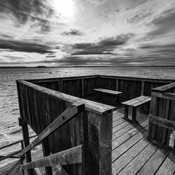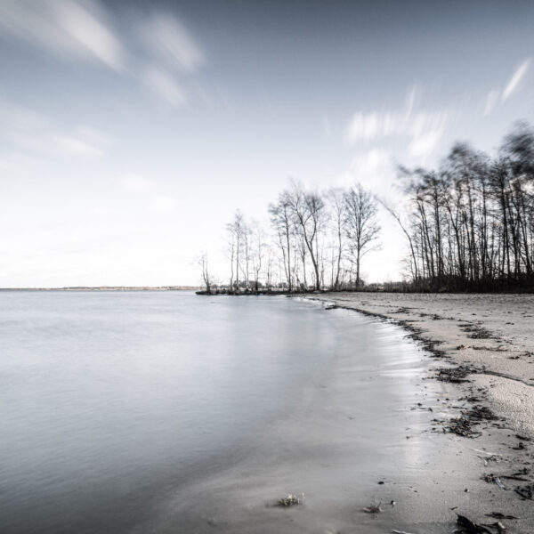 In den Wintermonaten kehrt Ruhe ein. Da wird aus einem Strand an der Badeinsel fast etwas idyllisches. Die Stege an denen sonst die Segelboot liegen sind entweder abgebaut oder verwaist.